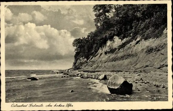 Ak Ostseebad Grömitz in Holstein, Am Hohen Ufer, Steilküste, Findling
