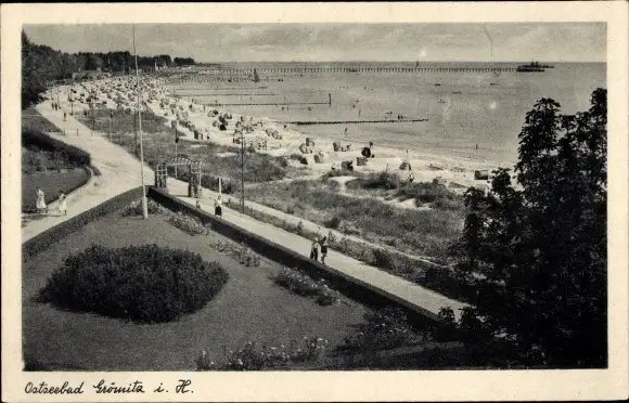Ak Ostseebad Grömitz in Holstein, Blick auf den Strand, Promenade