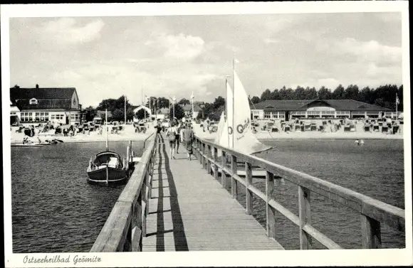Ak Ostseebad Grömitz in Holstein, Blick vom Steg zum Strand