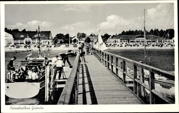 Ak Ostseebad Grömitz in Holstein, Landungsbrücke, Strand