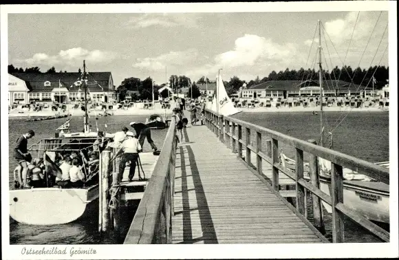 Ak Ostseebad Grömitz in Holstein, Landungsbrücke, Strand, Promenande
