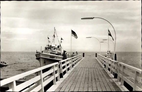 Ak Ostseebad Grömitz in Holstein, Seebrücke, Schiff