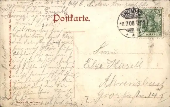 Zustand, siehe Scan, gelaufen, 1908 - ca 14 cm X 9 cm