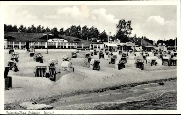 Ak Ostseebad Grömitz in Holstein, Strand, Kursaal, Strandkörbe