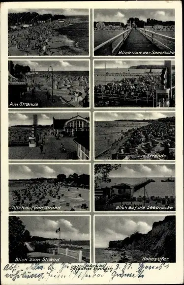 Ak Ostseebad Grömitz in Holstein, Strand, Seebrücke, Hohes Ufer