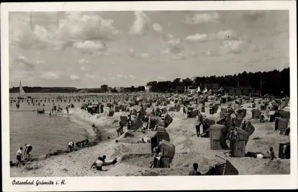 Ak Ostseebad Grömitz in Holstein, Strand, Strandkörbe