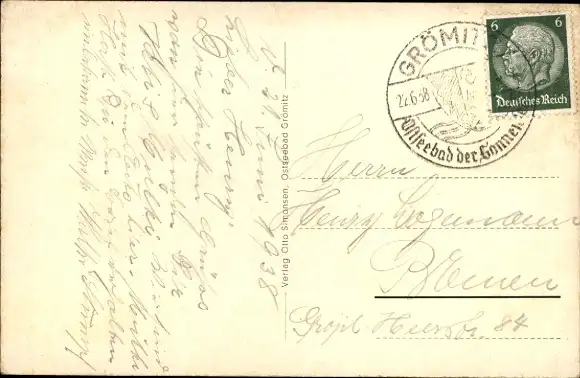 Zustand, siehe Scan, gelaufen, 1938 - ca 14 cm X 9 cm