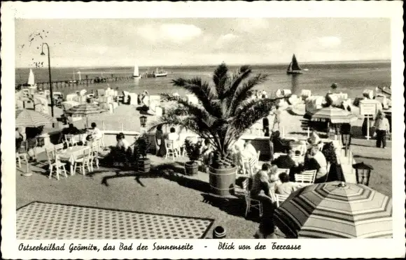 Ak Ostseebad Grömitz in Holstein, Strand von der Terrasse gesehen