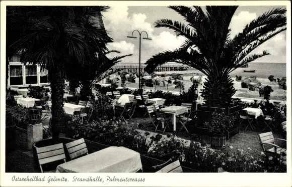Ak Ostseebad Grömitz in Holstein, Strandhalle, Palmenterrasse