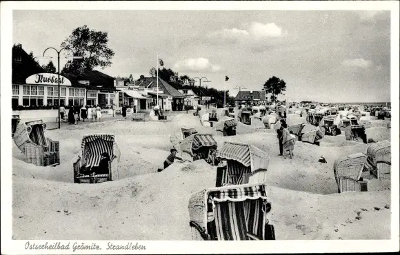 Ak Ostseebad Grömitz in Holstein, Strandleben, Kursaal, Strandkörbe