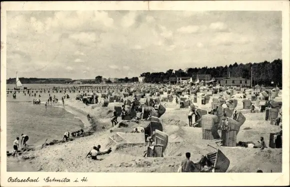 Ak Ostseebad Grömitz in Holstein, Strandleben, Strandkörbe