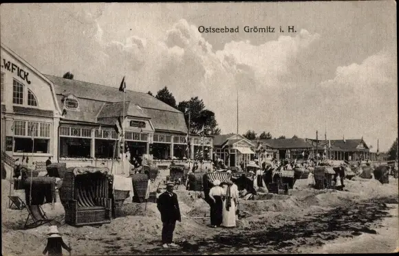 Ak Ostseebad Grömitz in Holstein, Strandleben, Strandkörbe, Sandburgen