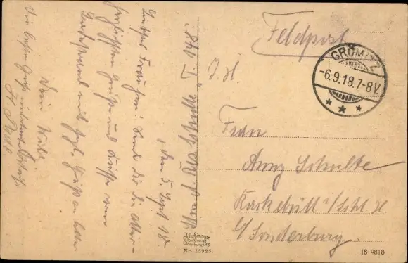 Zustand, siehe Scan, gelaufen, 1918 - ca 14 cm X 9 cm
