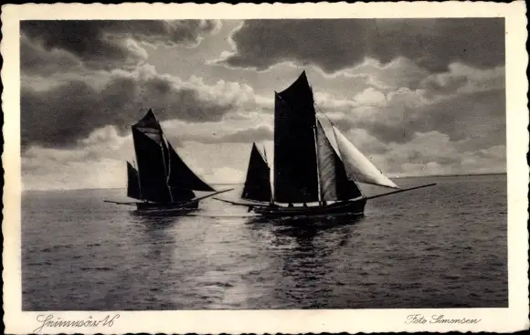 Ak Ostseebad Heringsdorf auf Usedom, Segelboote, Abendstimmung auf dem Meer