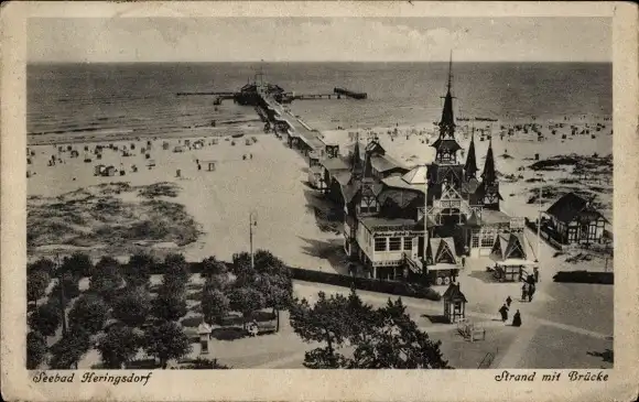 Ak Ostseebad Heringsdorf auf Usedom, Strand, Seebrücke