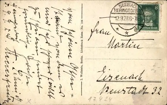 Zustand, siehe Scan, gelaufen, 1928 - ca 14 cm X 9 cm