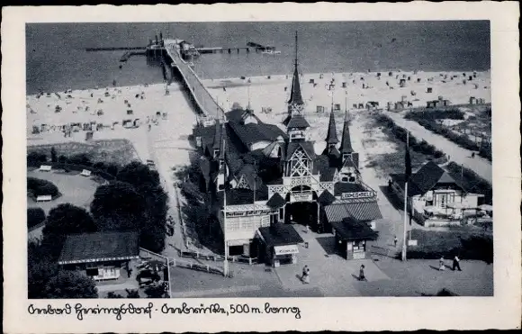Ak Ostseebad Heringsdorf auf Usedom, Strand, Seebrücke