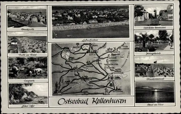 Ak Ostseebad Kellenhusen in Holstein, Luftaufnahme, Strand, Promenade, Landkarte