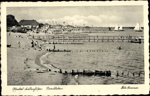 Ak Ostseebad Kellenhusen in Holstein, Strand, Badegäste, Stege, Segelboote