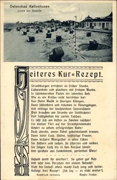 Ak Ostseebad Kellenhusen in Holstein, Strand, Gedicht Heiteres Kur-Rezept von Magda Fischer