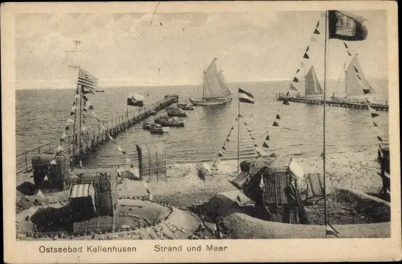 Ak Ostseebad Kellenhusen in Holstein, Strand, Seebrücke, Segelboote