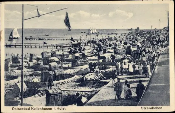 Ak Ostseebad Kellenhusen in Holstein, Strand, Strandkörbe, Badegäste, Segelboote