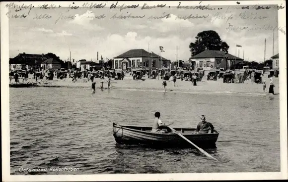 Ak Ostseebad Kellenhusen in Holstein, Strand, Strandkörbe, Ruderboot