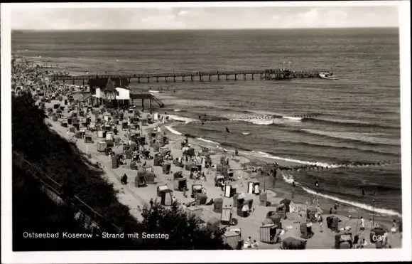 Ak Ostseebad Koserow auf Usedom, Seebrücke, Strand
