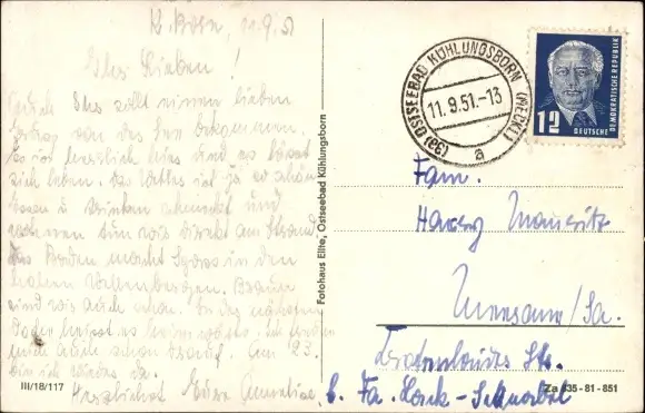 Zustand, siehe Scan, gelaufen, 1951 - ca 14 cm X 9 cm