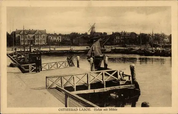 Ak Ostseebad Laboe, Hafen mit Mühle