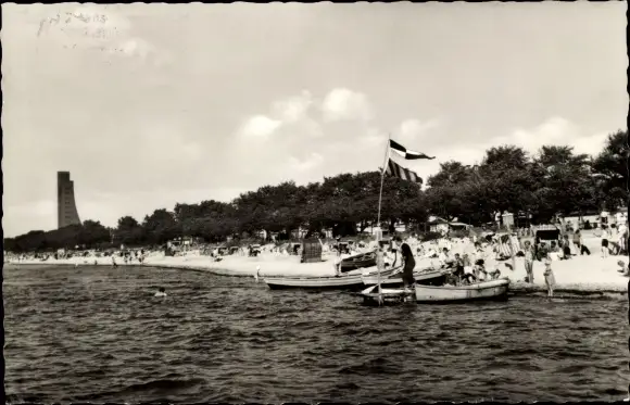 Ak Ostseebad Laboe, Kieler Förde, Strand, Marine-Ehrenmal, Boote