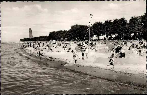 Ak Ostseebad Laboe, Marine Ehrenmal, Strand, Badegäste