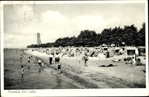 Ak Ostseebad Laboe, Marine Ehrenmal, Strandleben