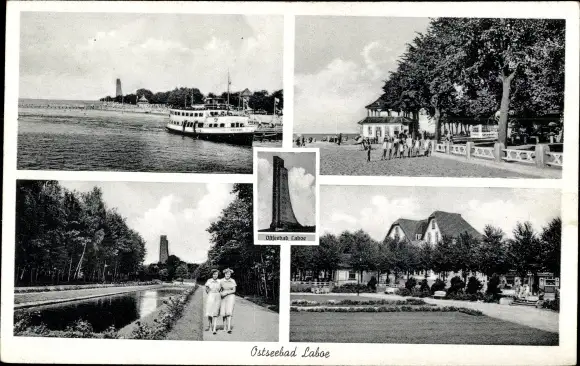 Ak Ostseebad Laboe, Marine Ehrenmal, Strandpartie, Ortspartie, Fähre