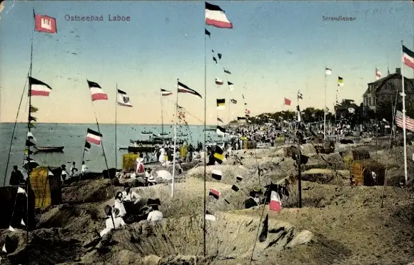 Ak Ostseebad Laboe, Strand, Wimpelketten, Strandkörbe