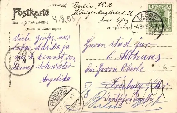 Zustand, siehe Scan, gelaufen, 1905 - ca 14 cm X 9 cm