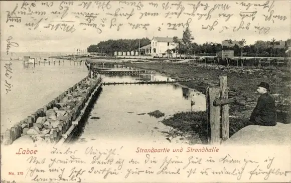 Ak Ostseebad Laboe, Strandpartie, Strandhalle