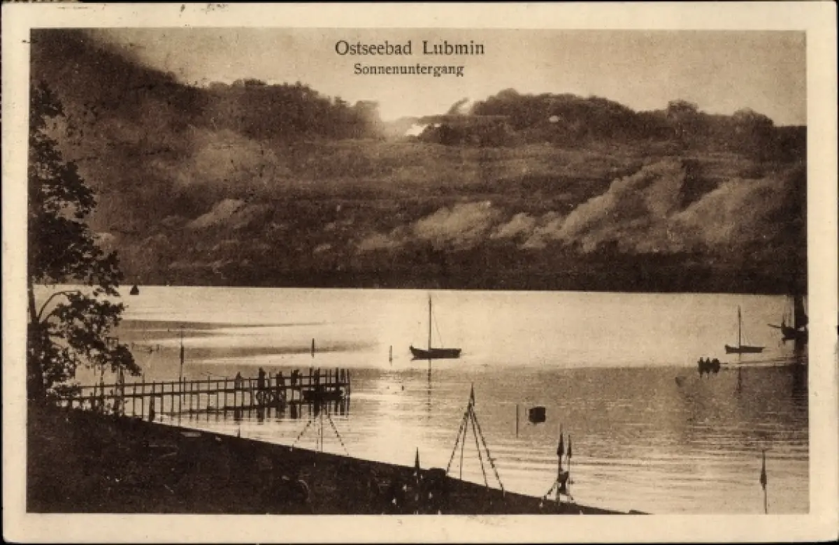 Ak Ostseebad Lubmin in Pommern, Sonnenuntergang