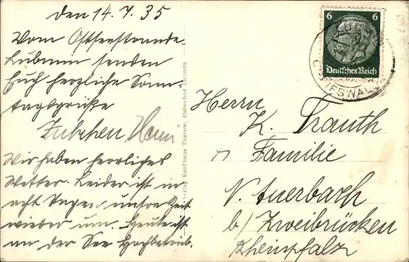 Zustand, siehe Scan, gelaufen, 1935 - ca 14 cm X 9 cm