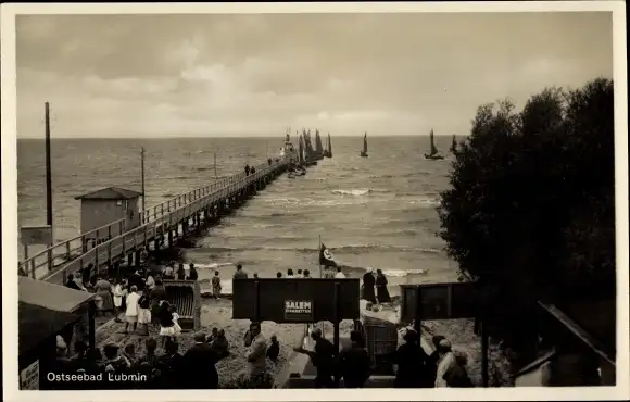 Ak Ostseebad Lubmin in Pommern, Strand mit Seebrücke