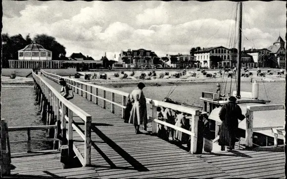 Ak Ostseebad Niendorf Timmendorfer Strand, Blick von der Seebrücke auf den Strand