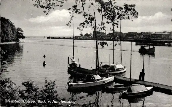 Ak Ostseebad Pelzerhaken Neustadt in Holstein, Blick vom Jungfernstieg, Boote