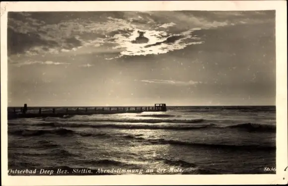Ak Ostseebad Pommern, Abendstimmung an der Mole