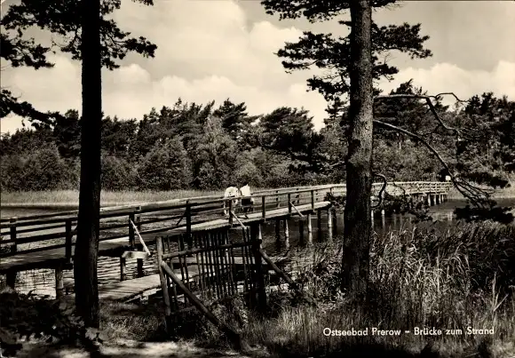 Ak Ostseebad Prerow auf dem Darß, Brücke zum Strand