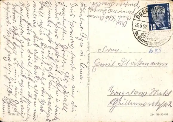 Zustand, siehe Scan, gelaufen, 1952 - ca 15 cm X 11 cm
