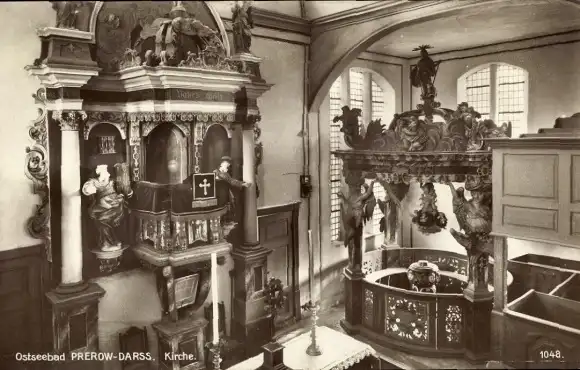 Ak Ostseebad Prerow auf dem Darß, Kirche, Innenansicht