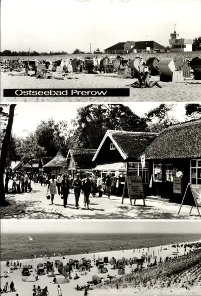 Ak Ostseebad Prerow auf dem Darß, Strand, Ortsansicht, Strandkörbe