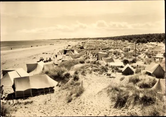 Ak Ostseebad Prerow auf dem Darß, Strand, Zelte