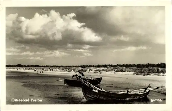 Ak Ostseebad Prerow auf dem Darß, Strandpartie, Boote