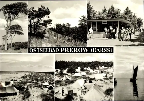 Ak Ostseebad Prerow auf dem Darß, Zeltlager, Segelboot